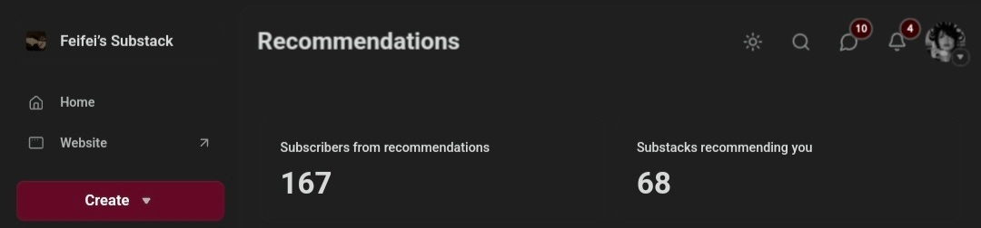 68 Substacks are recommending me. That has brought in 167 subscribers total.
