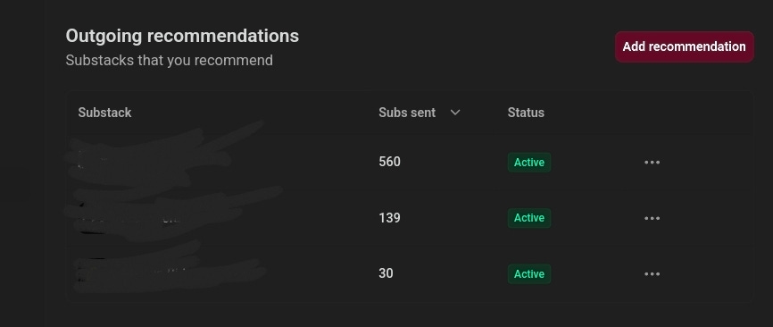 The writers recommending me are not doing anything wrong. They're just small. Most of them have a few hundred subscribers, maybe less. When they recommend me, their audience sees it but a small audience means a small number of new subscribers coming through, no matter how warmly they endorse me.